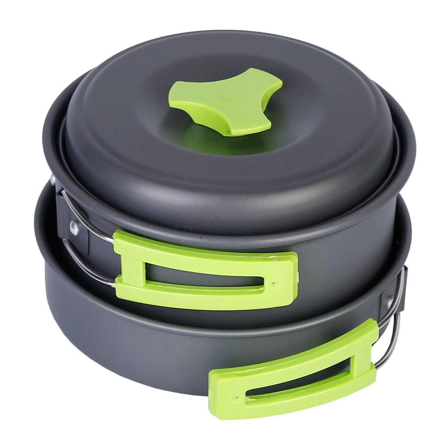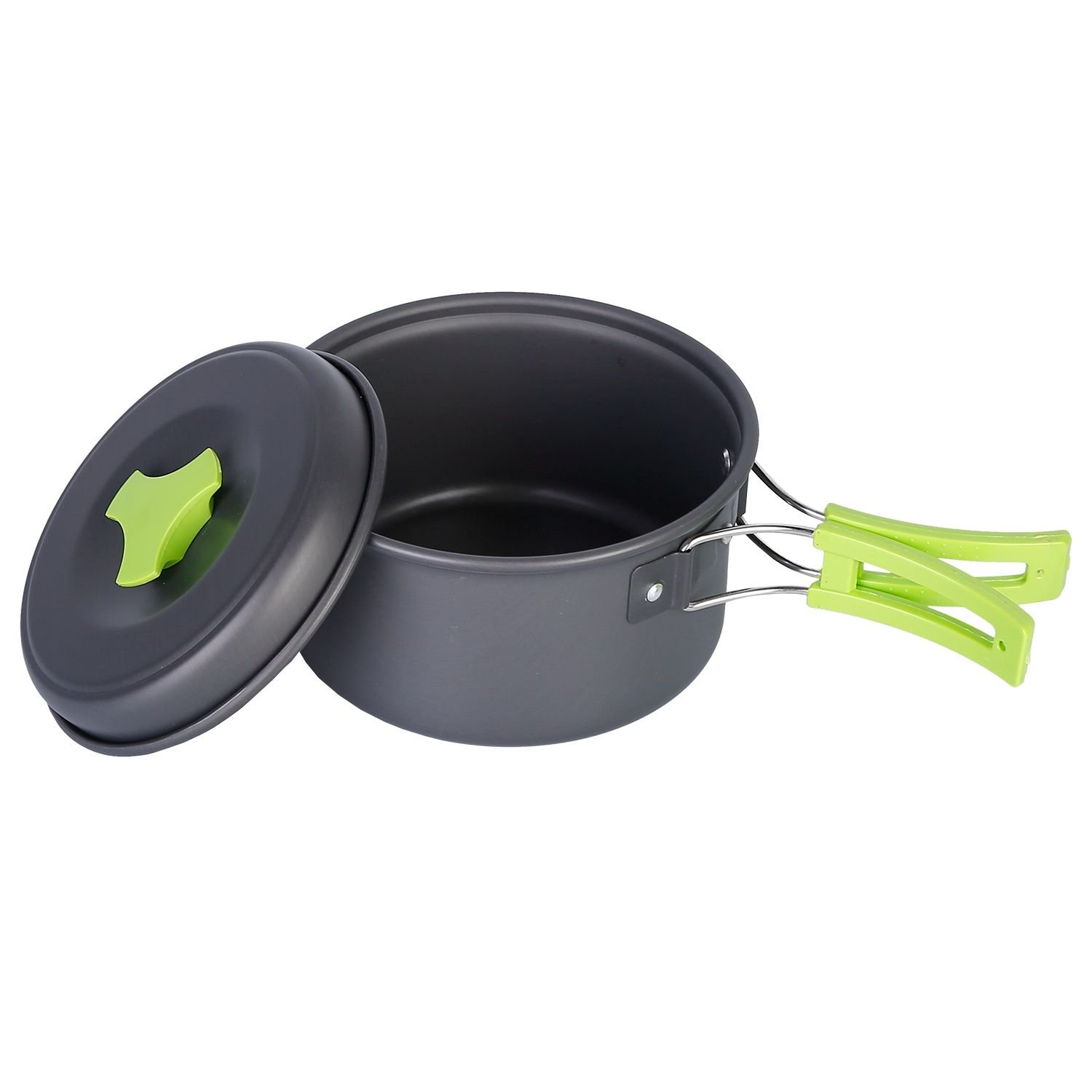 *Safe & Efficient*:The pot and pan are made of anodized aluminum; which is lightweight and fast in heat conduction. It’s easier to clean; transport and carry; money and time saving. Besides; the foldable handles at the side are heat-resistant and skid-proof; which can effectively avoid burning hands. Made of food-grade plastic; the spoon and bowls are safe and durable.