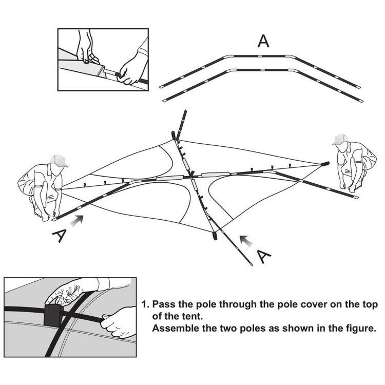 1.Sturdy fiberglass poles to maintain the shape of the tent without sagging
