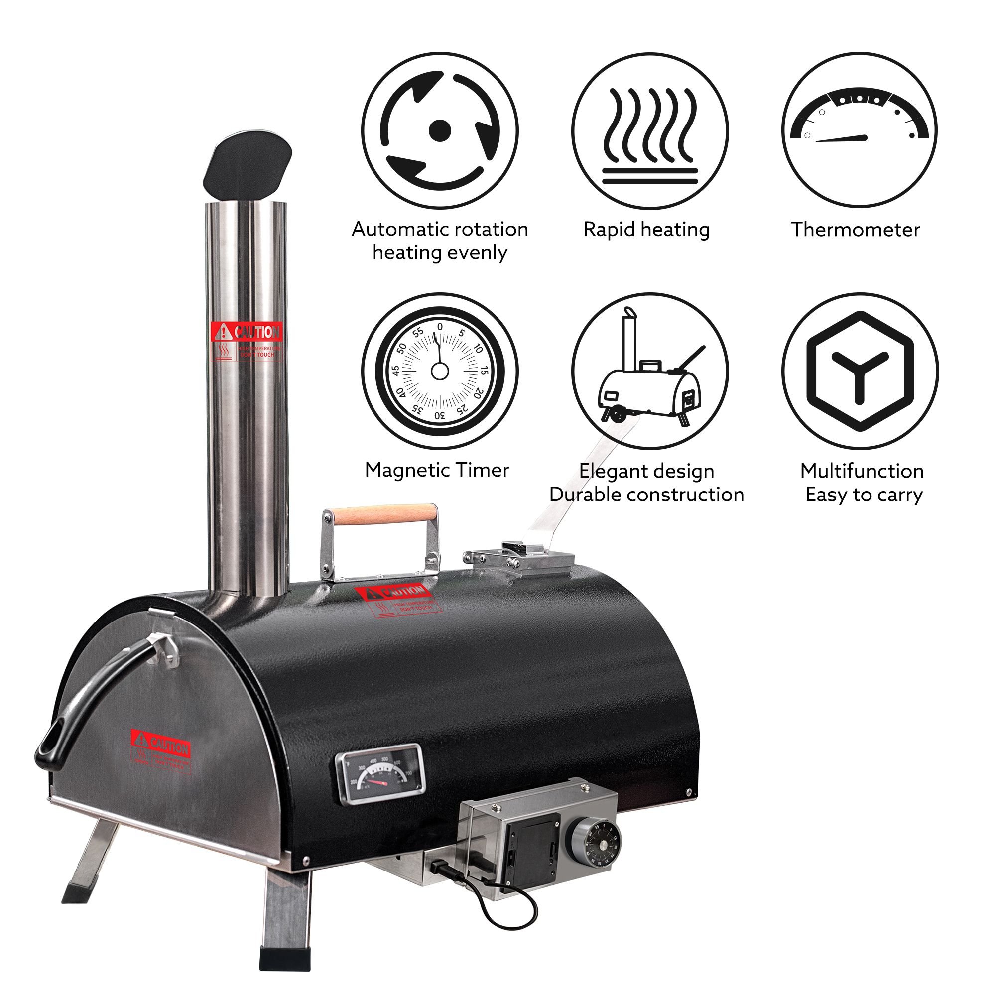 Automatic rotating turntable for even heating: The outdoor pizza oven features an automatic rotating turntable that ensures even heating, resulting in a perfectly cooked pizza with evenly baked crust and toppings.