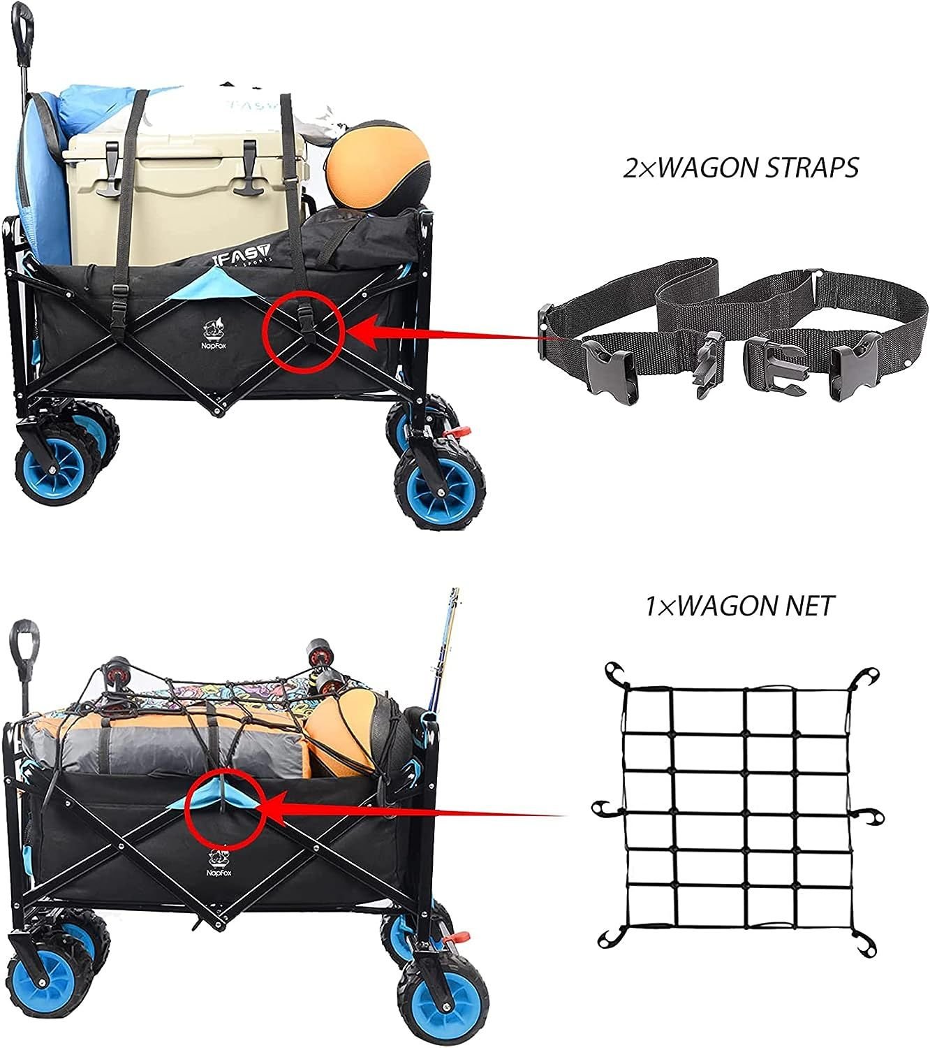 2.CONVENIENT COMPACT STORAGE - Wagon folds to only 7.48" thick! Folded size approx29.5x22.3x7.5’’. All terrain collapsible folding outdoor wagon cart has internal pull rope design, it can be folded in 3 seconds. And the handle is 38.9 inches long, so you don't have to bend over to use it, even if you're 6 feet tall.It takes up so little space that you only need a small space to store it when you're not using it.