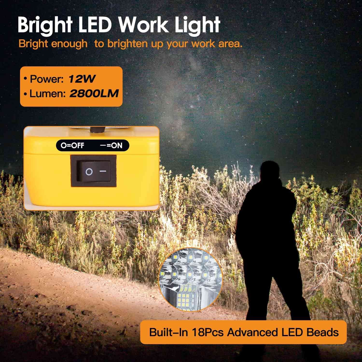 *Bright LED Work Light*:Equipped with 18Pcs LED beads,the work light features with 12W power and 2800lm lumen,bright enough to brighten up your work area. Suitable for outdoor camping,hiking,fishing,hunting,etc..