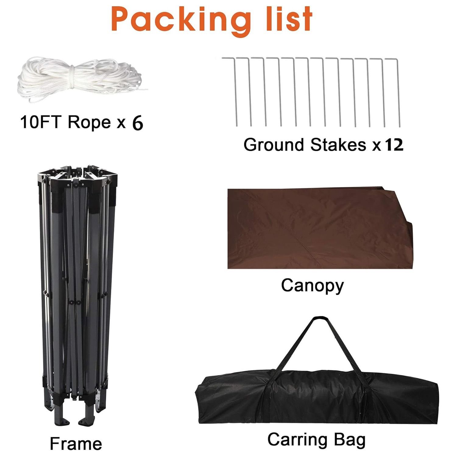 Easy Set Up: Tent overall size: 13.2'(L) x 13.2'(W) x 8.2'(H); Weight: 41LB; Only need 3 steps , pop up the frame then place the fabrics over the frame,fully extend and adjust height ,you can easily set up in minutes; It would be great if a friend installed with you together.