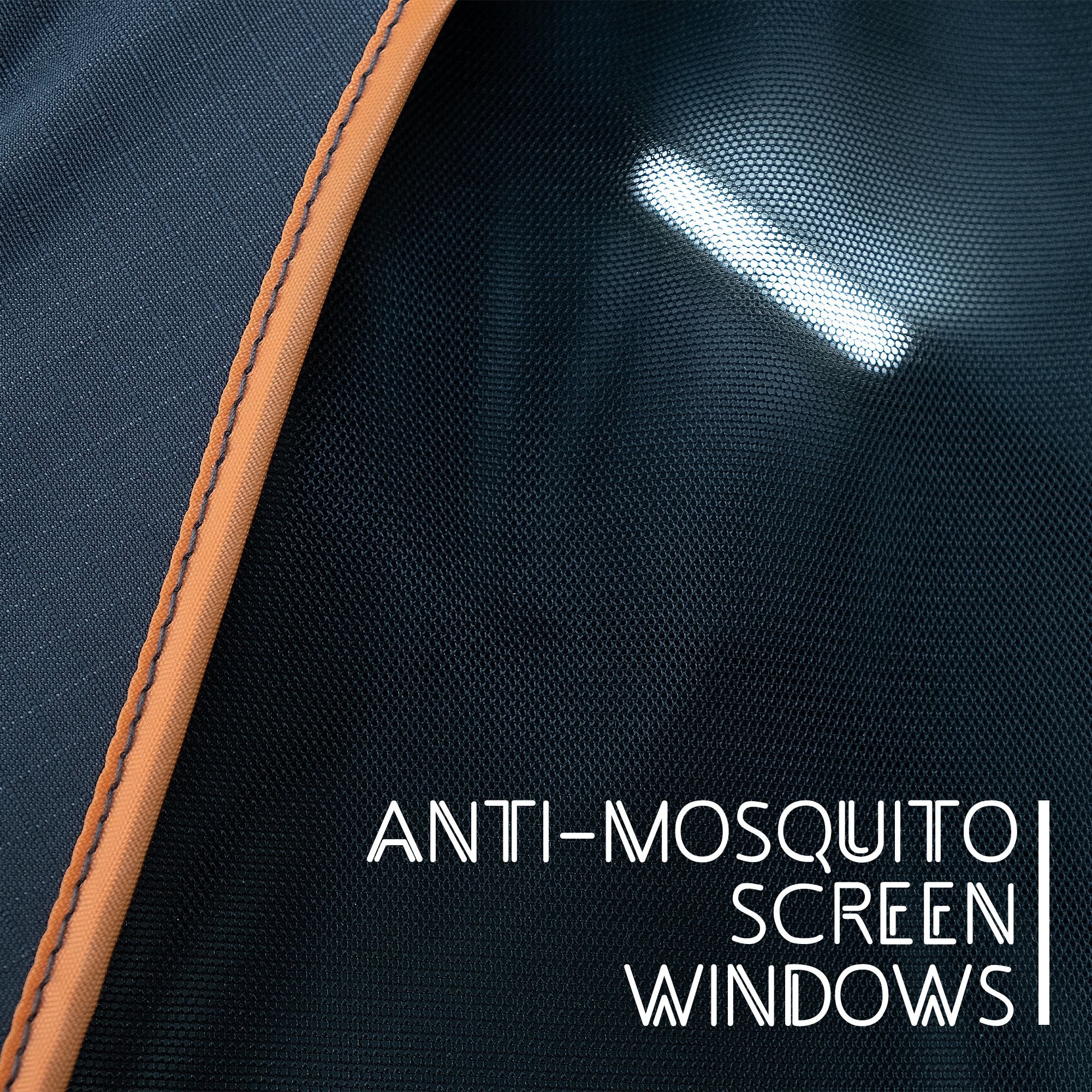 2. With the help of flame retardant fabric materials; and CPAI-84 certificated. Can be safer and more comfortable while camping. 100% waterproof; breathable; UV-Resistant and non-perishable. All Windows are covered with quality insect-proof netting.