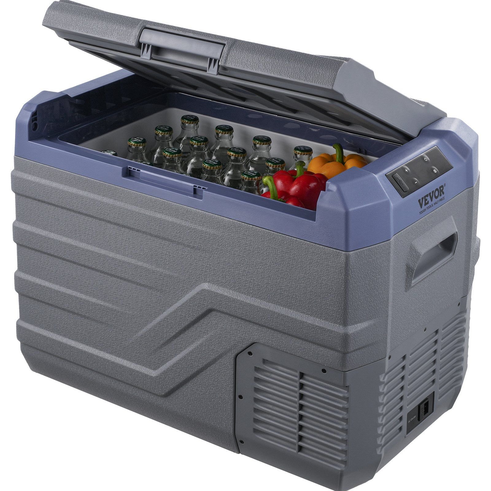 1.Large Capacity: The portable refrigerator freezer has a single compartment capacity of 37 L. This robust RV fridge can hold 63 cans of 330ml cola or 48 bottles of 550ml water or 16 bottles of 750ml red wine, accommodating seafood, snacks, meats, and beverages, meeting the needs of short trips such as travel, boating, and camping.